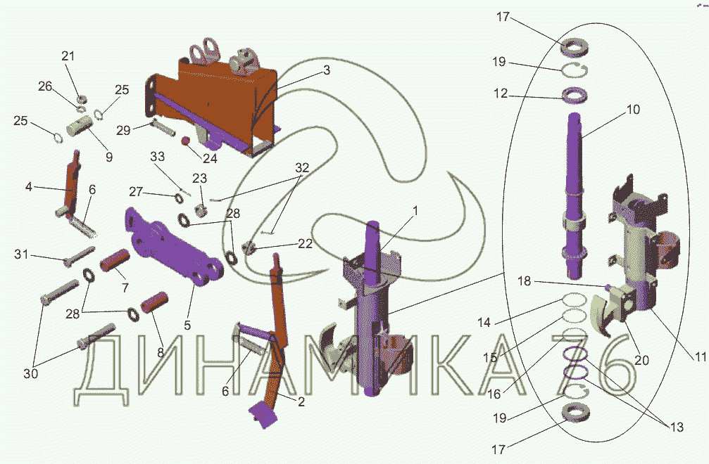 Перечень комплектующих от Кронштейн с колонкой на МАЗ-256 (вариант)