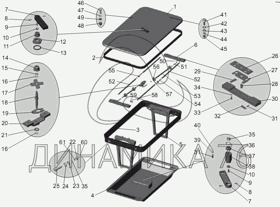 Перечень комплектующих от Люк аварийный на МАЗ-256 (вариант)