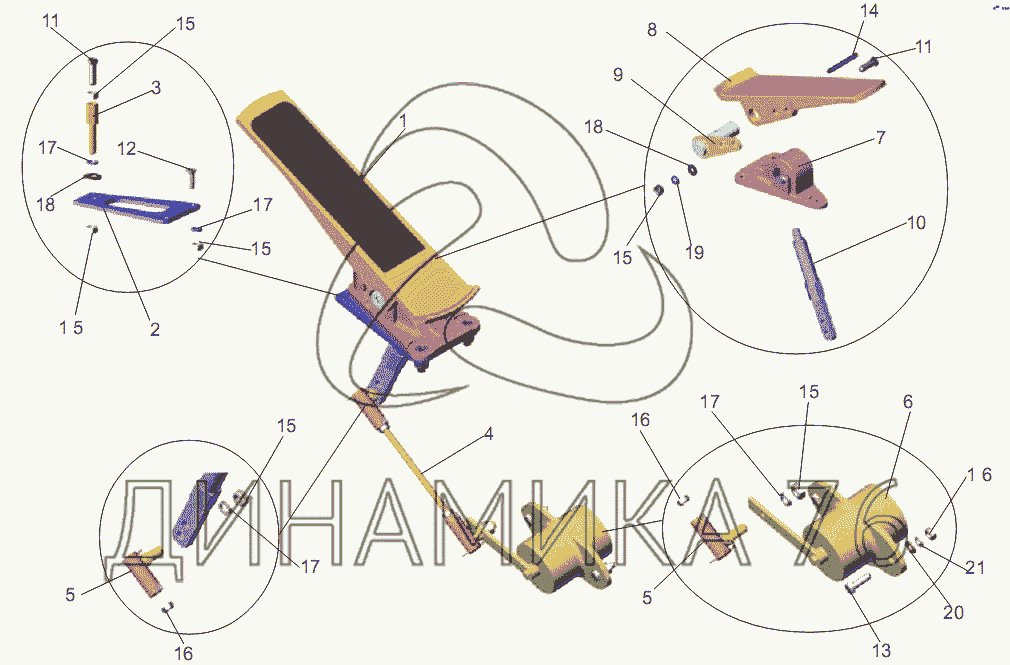 Перечень комплектующих от Привод управления двигателем на МАЗ-256 (вариант)