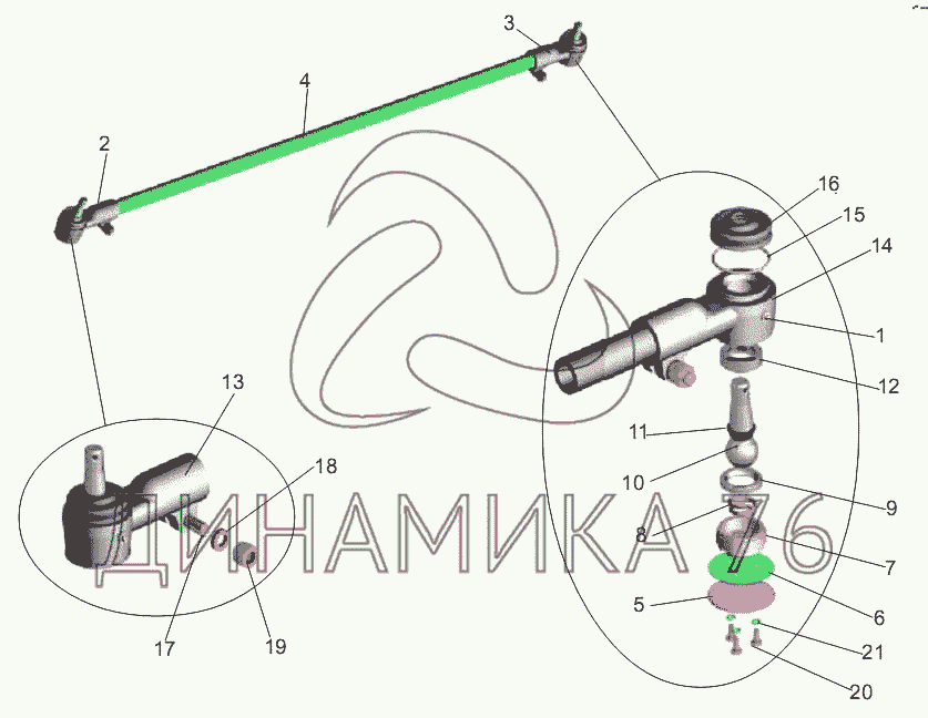 Перечень комплектующих от Тяга поперечная рулевая на МАЗ-256 (вариант)