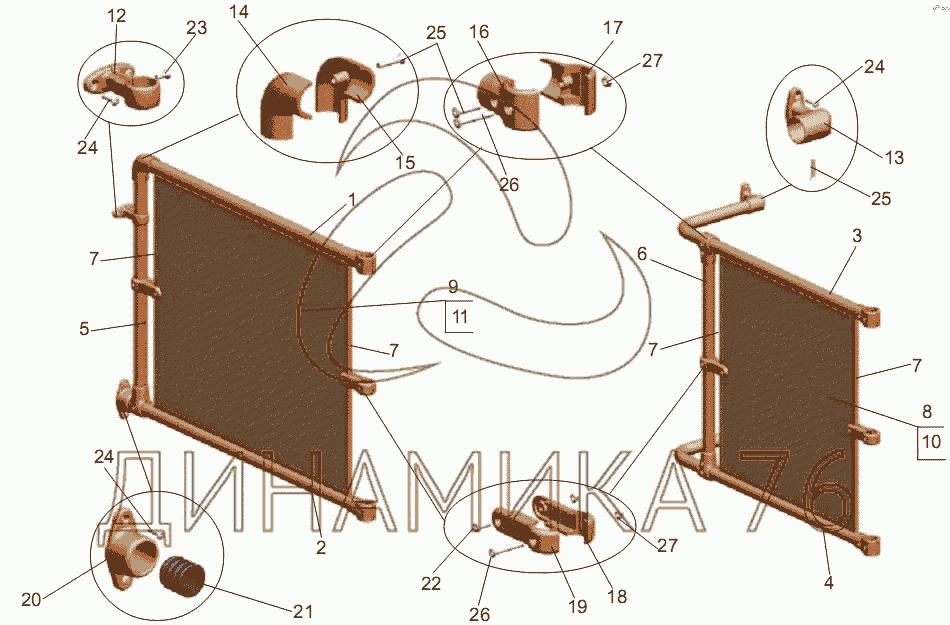 Перечень комплектующих от Установка ограждений на МАЗ-256 (вариант)