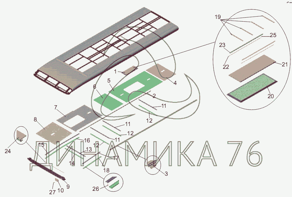 Перечень комплектующих от Установка панелей потолка на МАЗ-256 (вариант)
