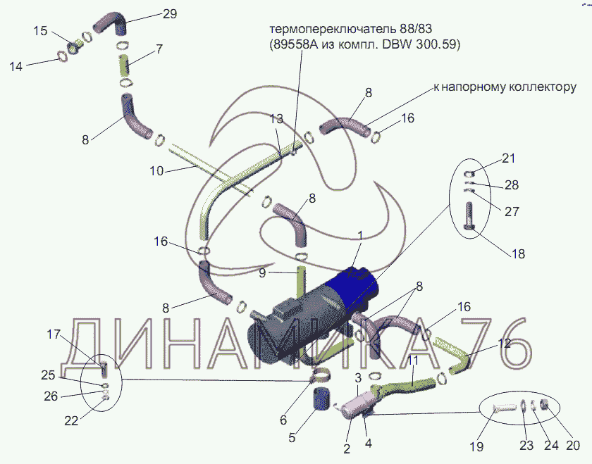 Перечень комплектующих от Установка подогревателя на МАЗ-256 (вариант)