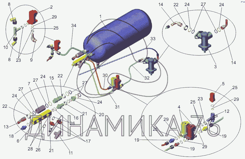 Перечень комплектующих от Установка ресивера привода дверей на МАЗ-256 (вариант)