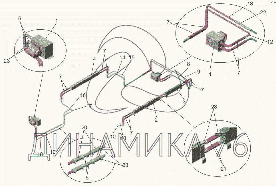Перечень комплектующих от Установка системы отопления в салоне на МАЗ-256 (вариант)
