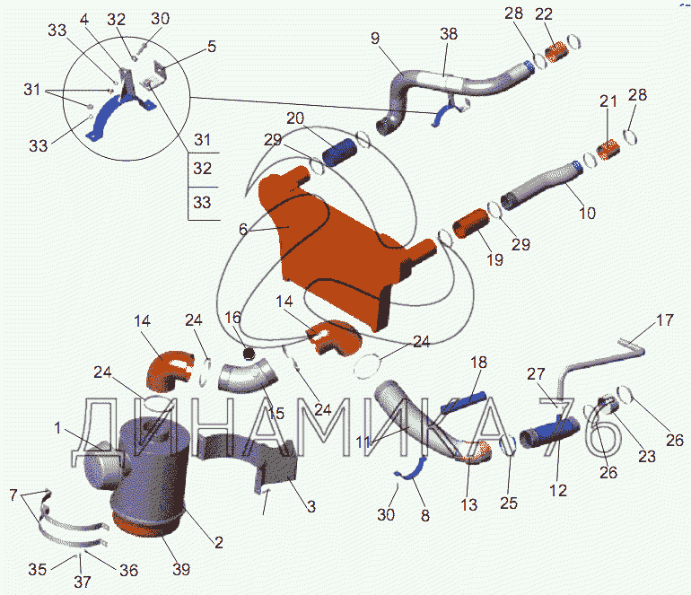 Перечень комплектующих от Установка системы питания двигателя воздухом на МАЗ-256 (вариант)