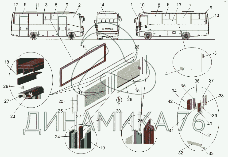 Перечень комплектующих от Установка стекол на МАЗ-256 (вариант)