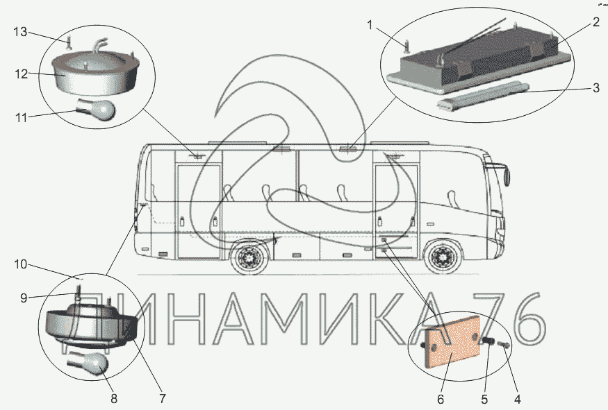 Перечень комплектующих от Внутренняя светотехника на МАЗ-256 (вариант)
