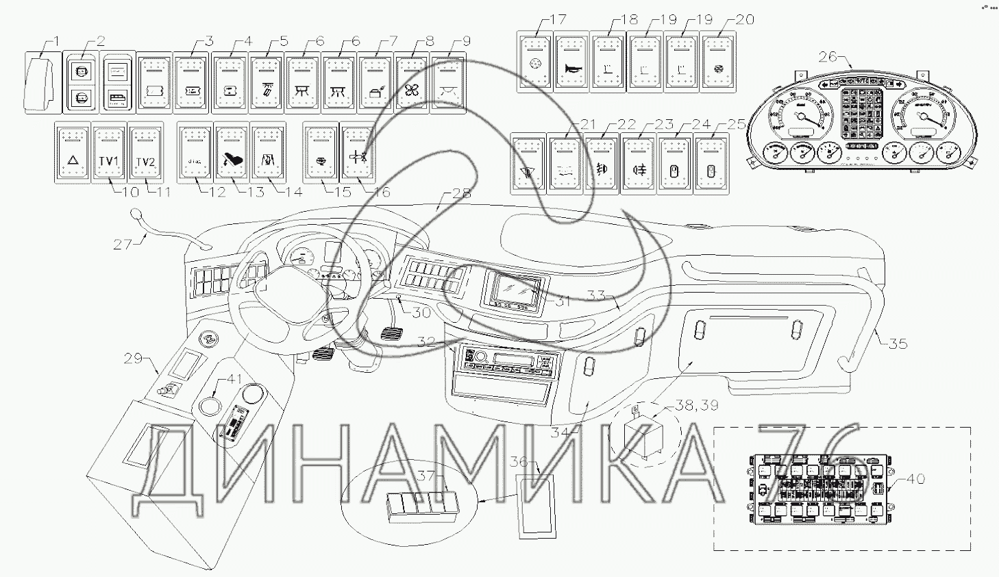 Перечень комплектующих от ELECTRICAL APPARATUS, FRONT INSTRUMENTS PANEL на XML6127CNG-3141495