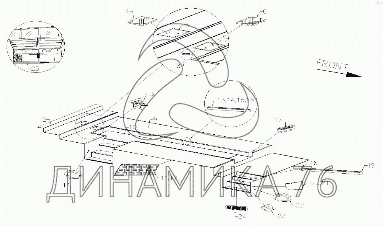Схемы запчастей предназначены для справочных целей! Мы продаем не все запчасти от FLOOR COVERING & REPAIR HATCH на XML6127CNG-3141495, представленные в этом списке.