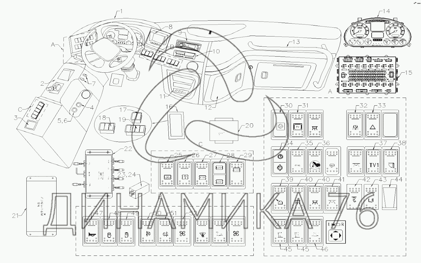 Схемы запчастей предназначены для справочных целей! Мы продаем не все запчасти от ELECTRICAL APPARATUS, FRONT INSTRUMENTS PANEL на XML6139JR-3141082, представленные в этом списке.