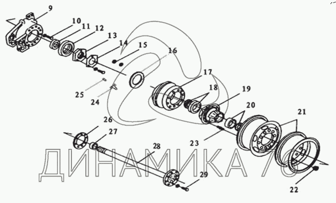 Перечень комплектующих от BRAKE HUB AND DRUM ASSEMBLY на KLQ6109GS