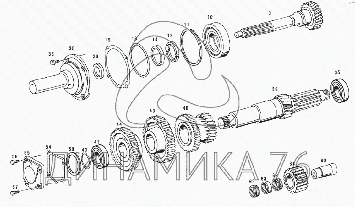 Input, counter, reverse shaft assy