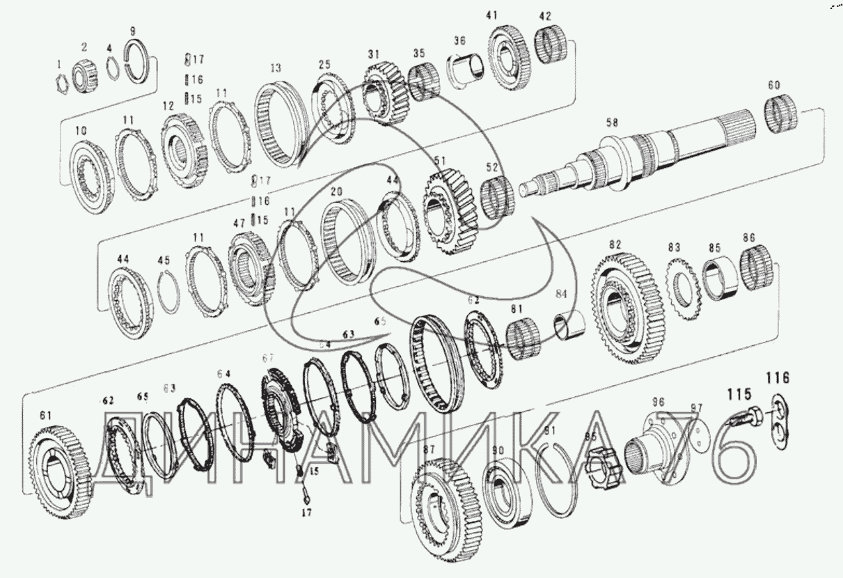 Перечень комплектующих от MAIN SHAFT ASSYY на KLQ6826Q