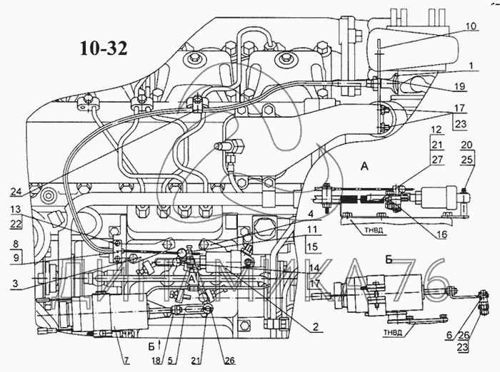 Перечень комплектующих от Установка пневмоцилиндра и тяг управления ТНВД на 5297