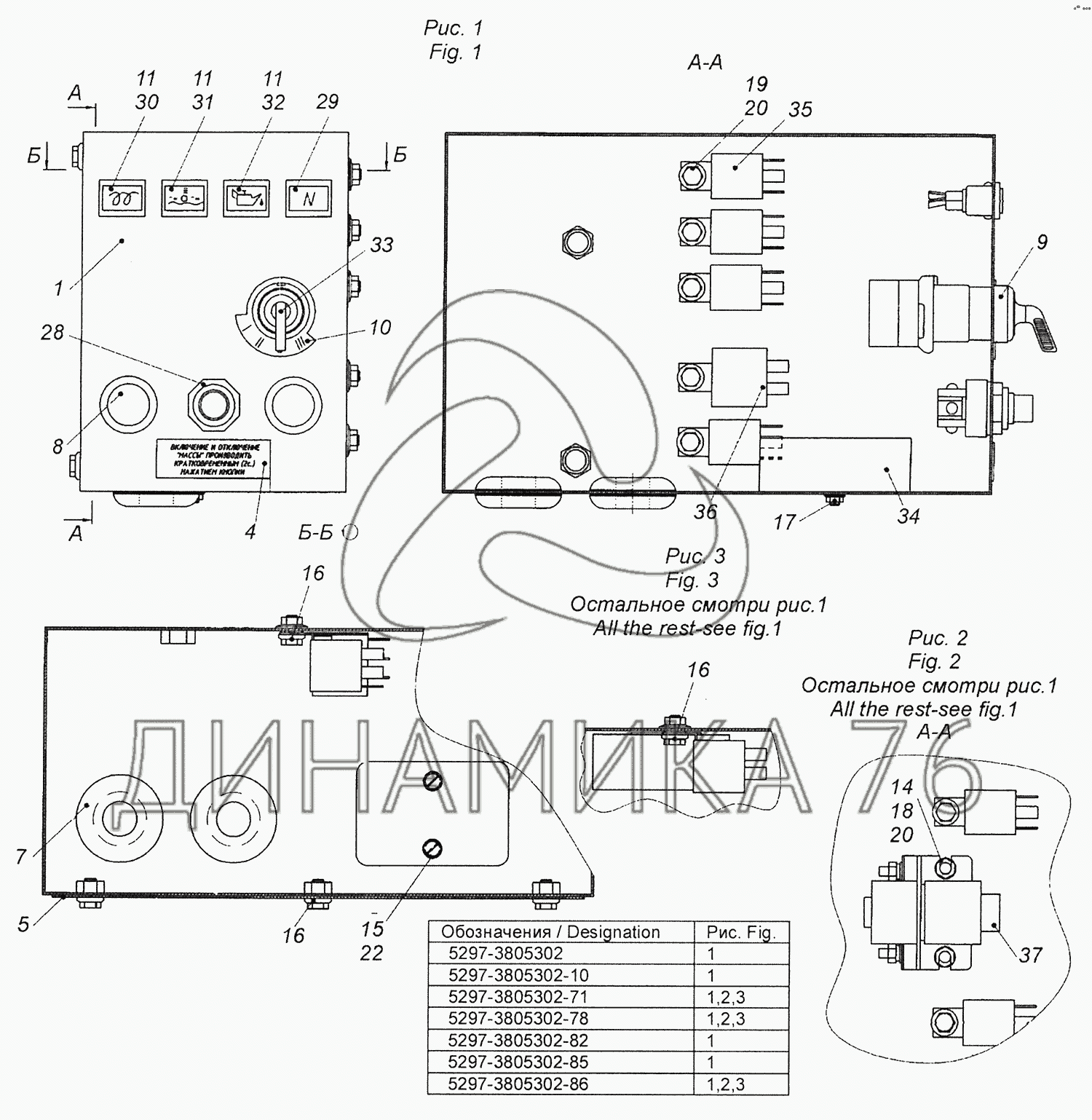 Перечень комплектующих от 5297-3805302 Щиток дистанционного управления на Шасси 52974