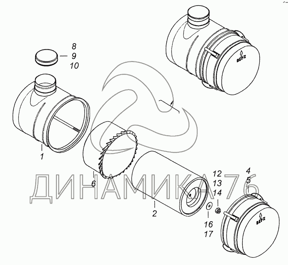 7405.1109510, 7405.1109510-01, 7405.1109510-02, 7405.1109510-03 Фильтр воздушный — Шасси 5297: