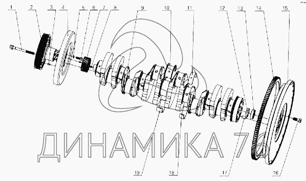 Assembly, crankshaft&flywheel на XMQ-6127 (до 2007 г.)