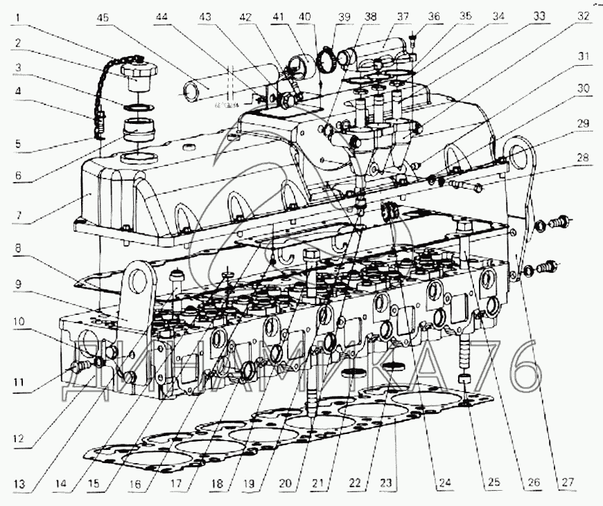 Перечень комплектующих от Assembly, cylinder head на XMQ-6127