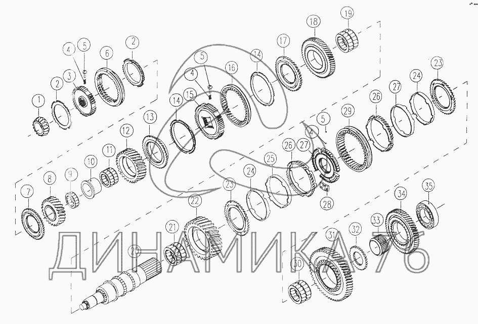 Перечень комплектующих от Output shaft and gear на XMQ-6127
