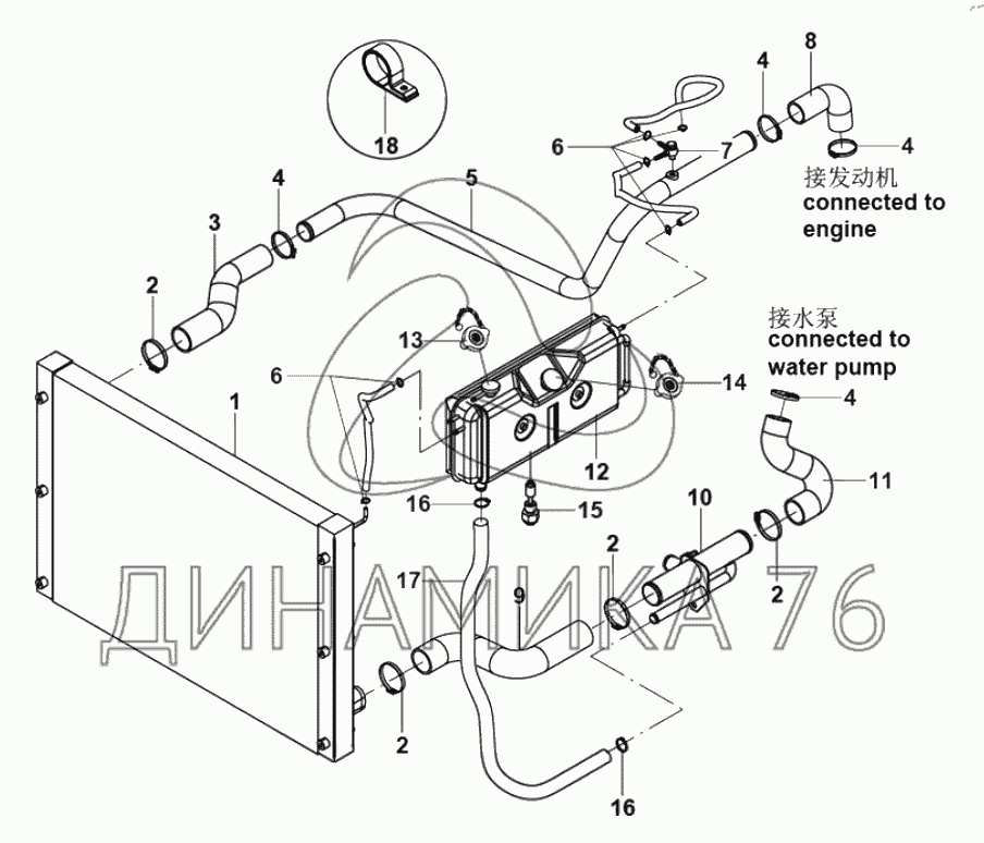 Перечень комплектующих от Cooling water pipe на XMQ-6127