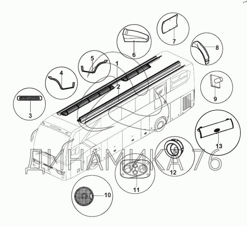 Схемы запчастей предназначены для справочных целей! Мы продаем не все запчасти от Luggage rack на XMQ-6127, представленные в этом списке.