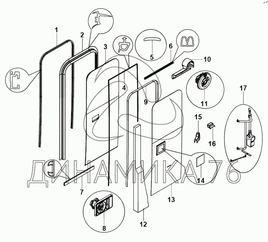 Перечень комплектующих от Middle passenger door на XMQ-6127