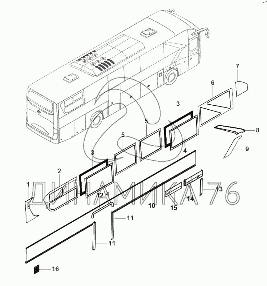 Схемы запчастей предназначены для справочных целей! Мы продаем не все запчасти от Right side glass на XMQ-6127, представленные в этом списке.