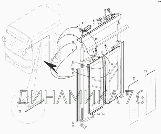 Перечень комплектующих от FRONT PASSENGER DOOR на XMQ-6127J