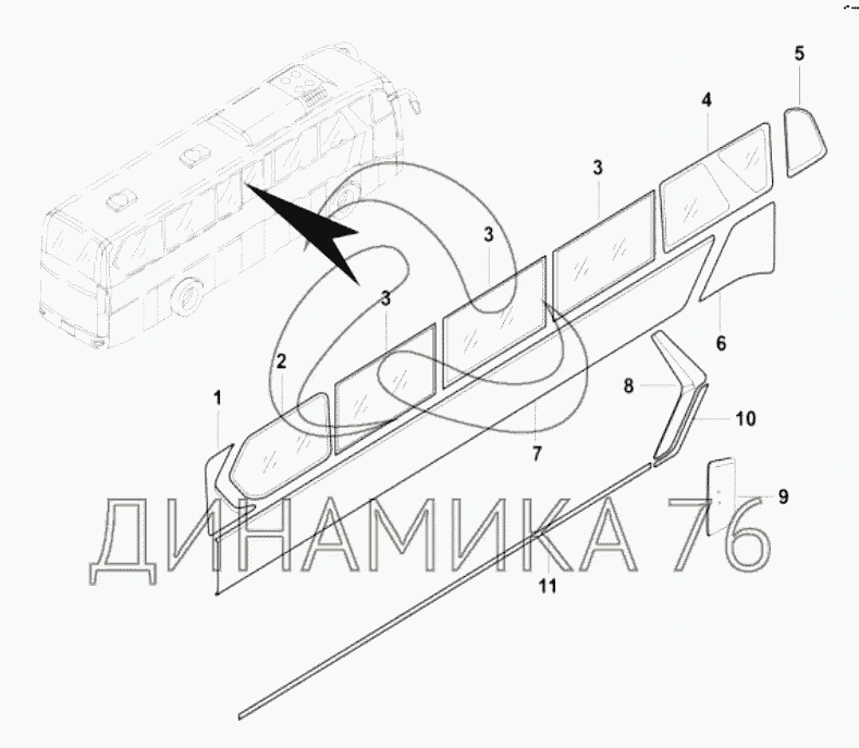 RIGHT SIDE GLASS на XMQ-6129Y (до 2010 г.)
