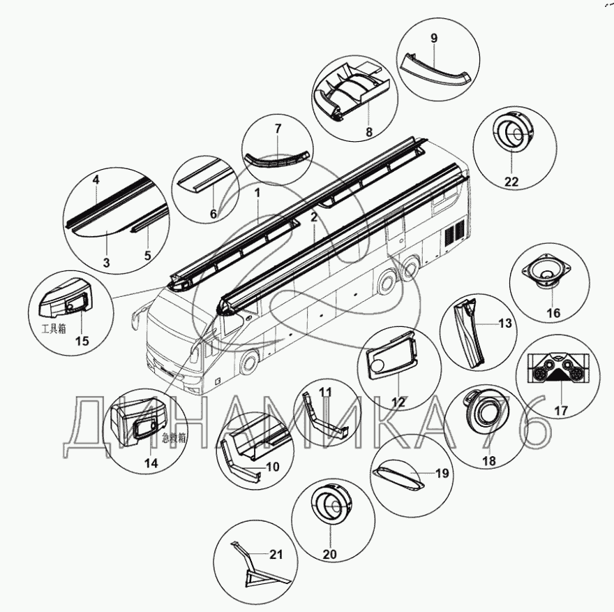 Схемы запчастей предназначены для справочных целей! Мы продаем не все запчасти от 57-1230 Luggage rack на XMQ-6135, представленные в этом списке.