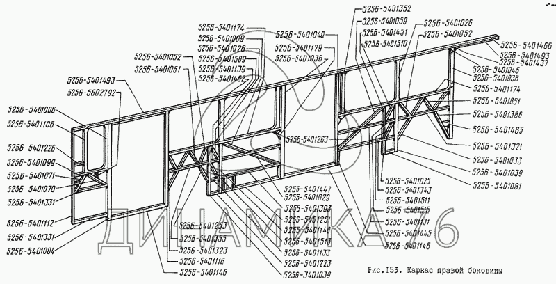 Схемы запчастей предназначены для справочных целей! Мы продаем не все запчасти от Каркас правой боковины на ЛиАЗ 5256, представленные в этом списке.