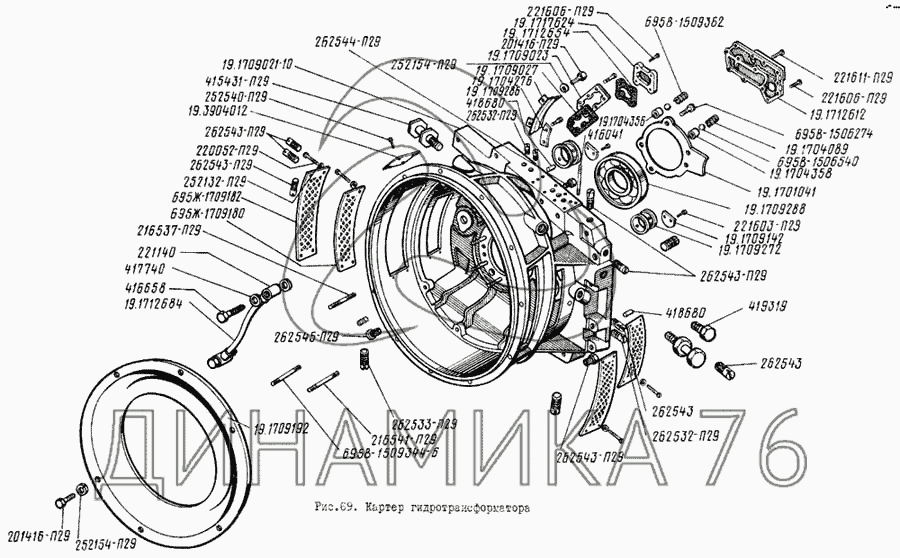 Перечень комплектующих от Картер гидротрансформатора на ЛиАЗ 5256