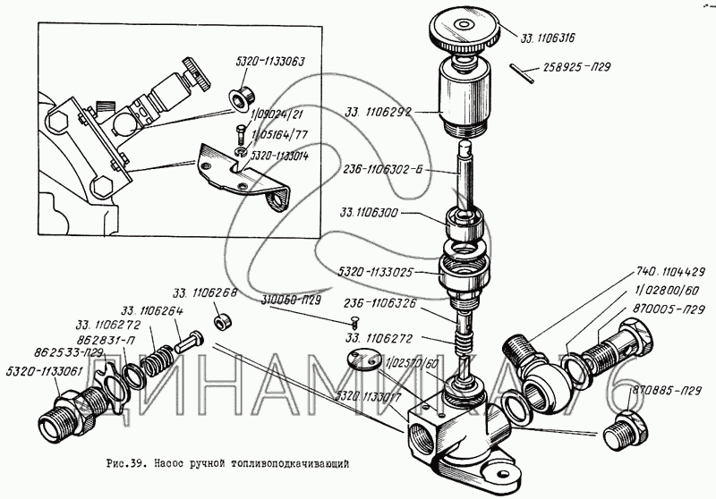 Перечень комплектующих от Насос ручной топливоподкачивающий на ЛиАЗ 5256
