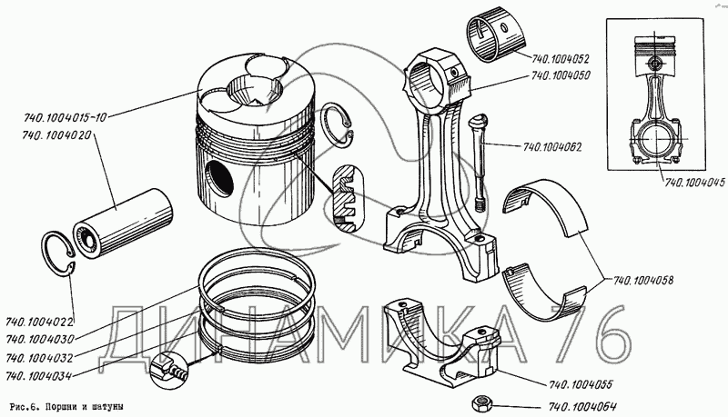 Перечень комплектующих от Поршни и шатуны на ЛиАЗ 5256
