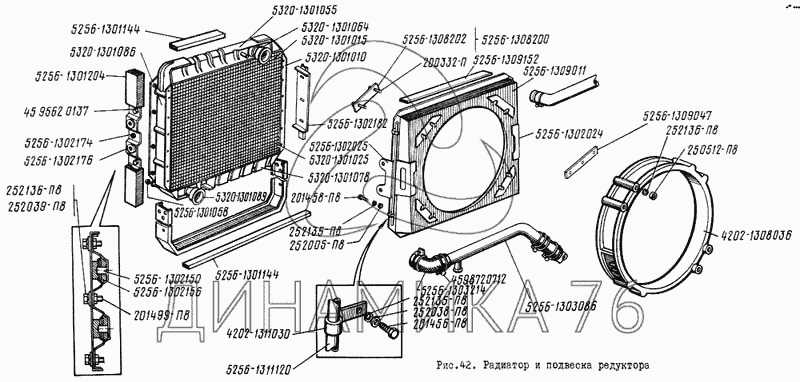 Перечень комплектующих от Радиатор и его подвеска на ЛиАЗ 5256