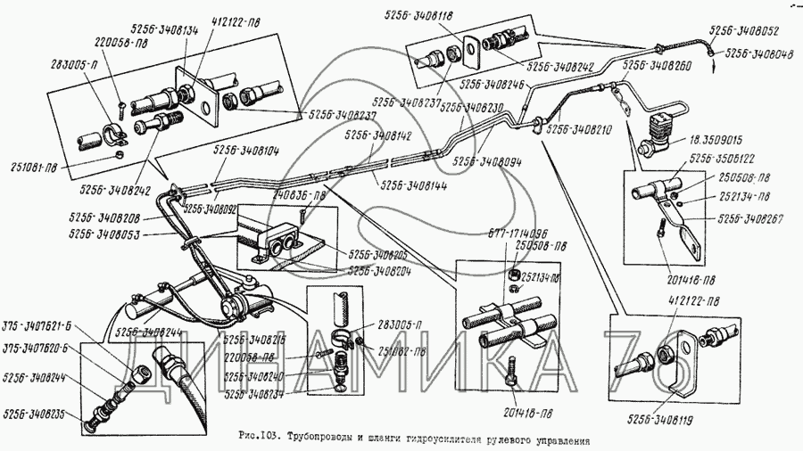 Перечень комплектующих от Трубопроводы и шланги гидроусилителя рулевого управления на ЛиАЗ 5256