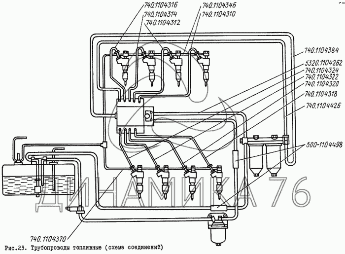 Трубопроводы топливные (схема соединений) — ЛиАЗ 5256: