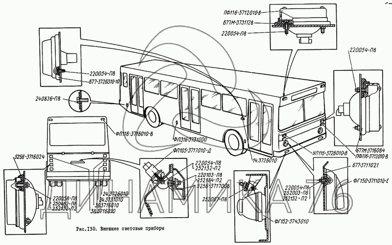 Схемы запчастей предназначены для справочных целей! Мы продаем не все запчасти от Внешние световые приборы на ЛиАЗ 5256, представленные в этом списке.