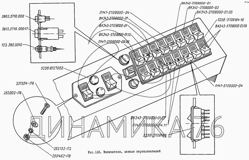 Схемы запчастей предназначены для справочных целей! Мы продаем не все запчасти от Выключатели, панели переключателей на ЛиАЗ 5256, представленные в этом списке.