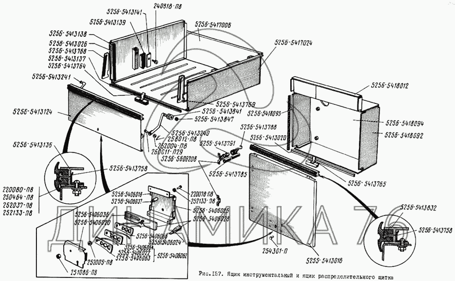Схемы запчастей предназначены для справочных целей! Мы продаем не все запчасти от Ящик инструментальный и ящик распределительного щитка на ЛиАЗ 5256, представленные в этом списке.