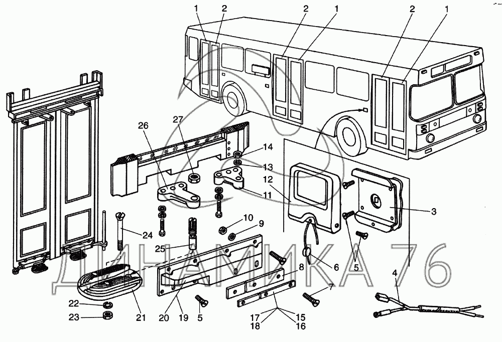 Перечень комплектующих от Двери пассажирские (низ) на ЛиАЗ-5256, 6212 (2006)