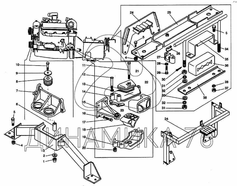 Подвеска силовых агрегатов на ЛиАЗ-5256, 6212 (2006) (до 2006 г.)