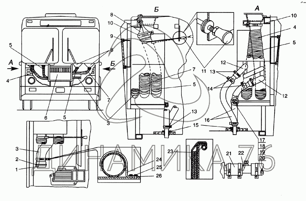 Перечень комплектующих от Установка фронтального отопителя Белробот на ЛиАЗ-5256, 6212 (2006)