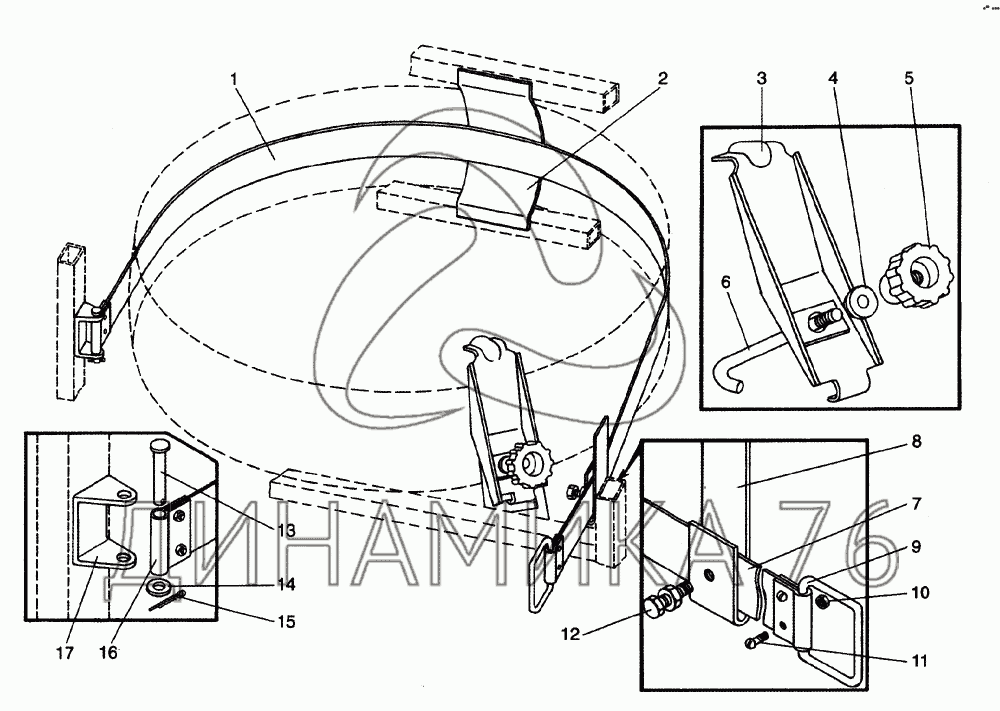 Перечень комплектующих от Устройство съема запасного колеса на ЛиАЗ-5256, 6212 (2006)