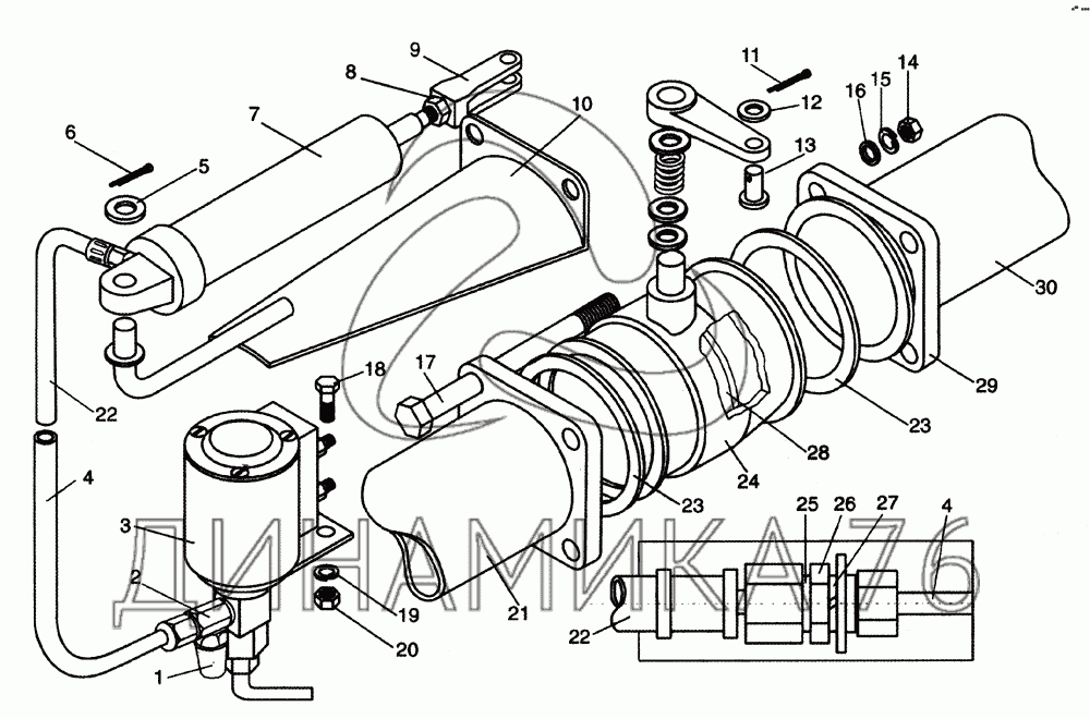 Перечень комплектующих от Вспомогательный тормоз автобуса ЛиАЗ-525640 с механической КПП на ЛиАЗ-5256, 6212 (2006)