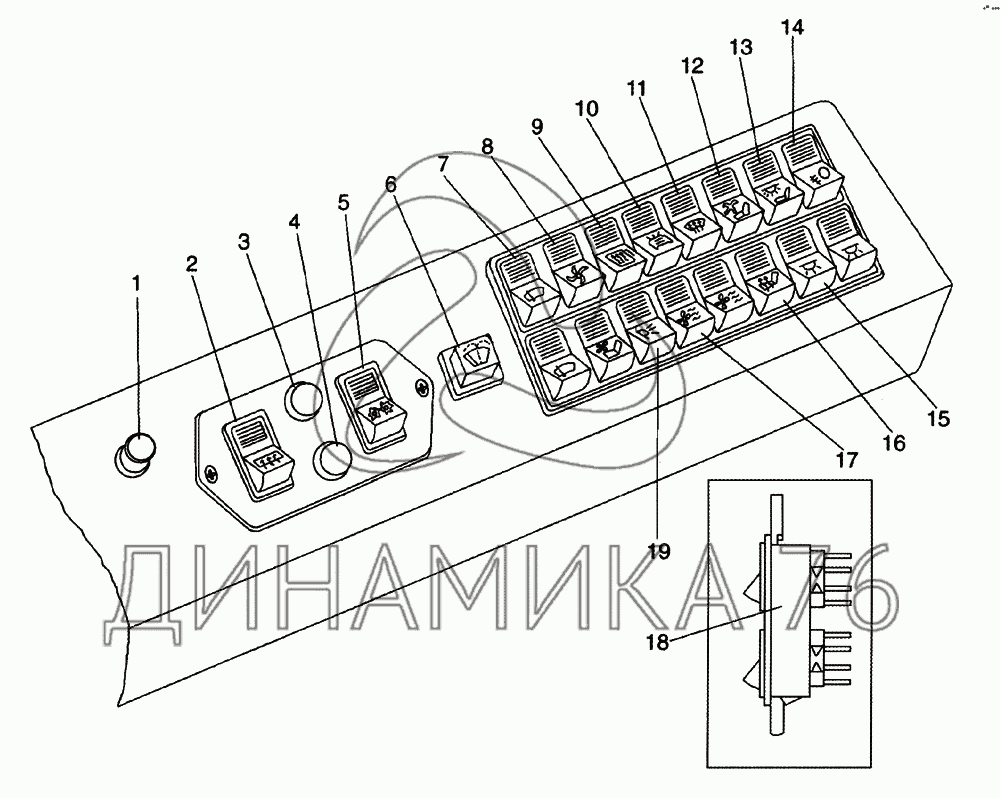 Выключатели, панели переключателей на ЛиАЗ-5256, 6212 (2006) (до 2006 г.)