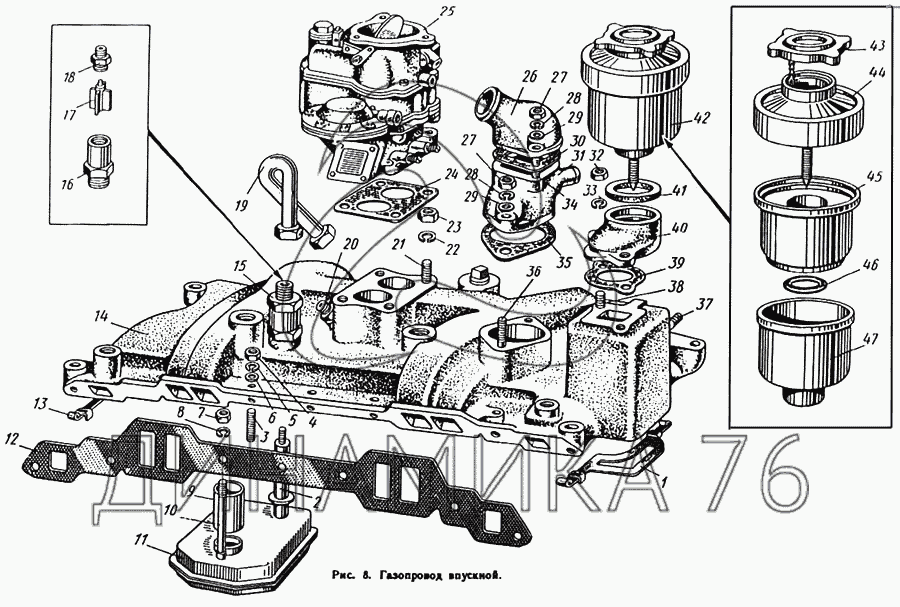 Перечень комплектующих от Газопровод впускной на ЛиАЗ 677