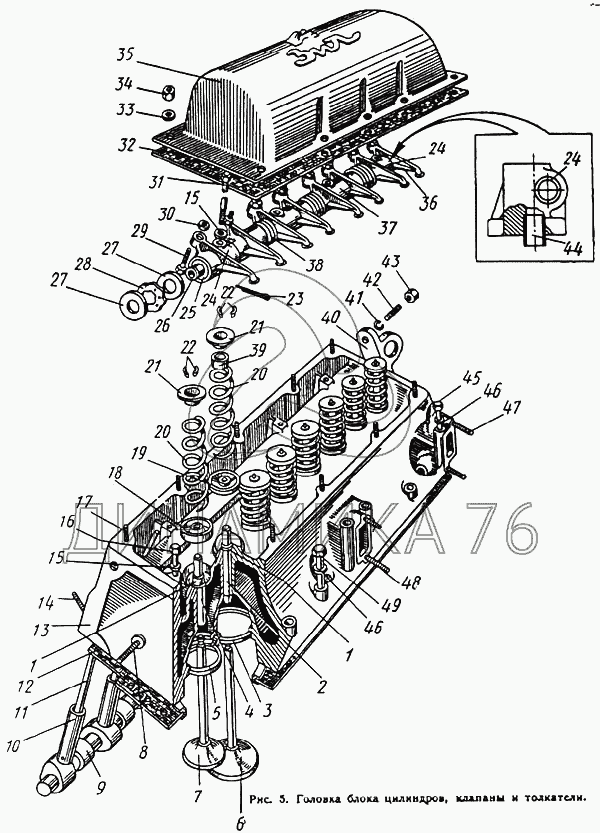 Головка блока цилиндров, клапаны и толкатели — ЛиАЗ 677: