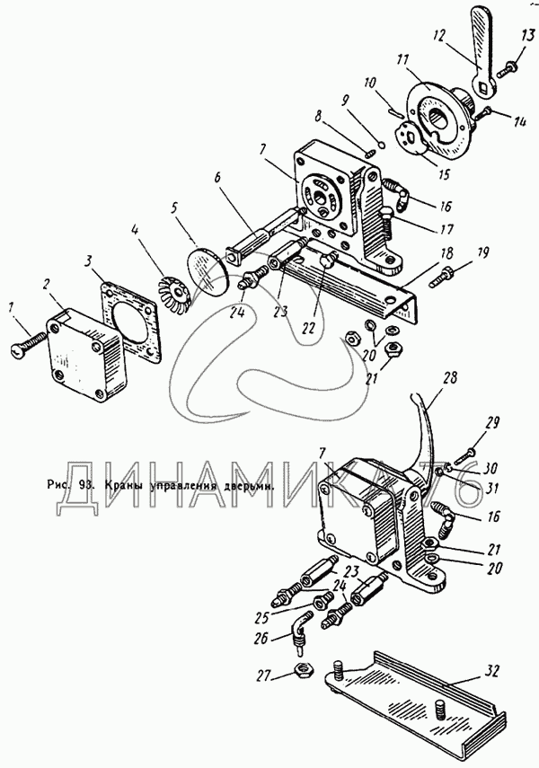 Перечень комплектующих от Краны управления дверьми на ЛиАЗ 677